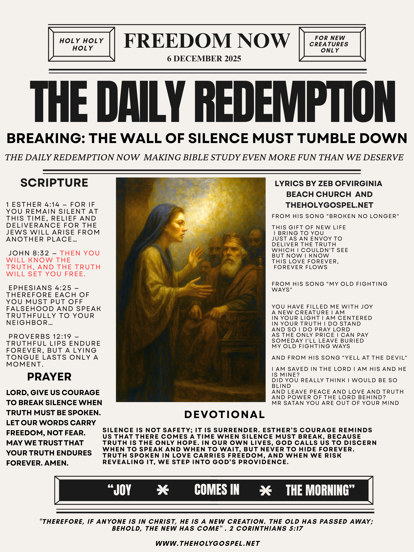 Holy, holy, holy! We welcome you to this Daily Redemption Bible Bulletin. Witness a dramatic collapse as a wall falls, accompanied by powerful crowd noise and the resonant blast of a heavenly trumpet. This video uses striking sound effect to powerfully illustrate an event of biblical inspiration, reminding us of divine power.