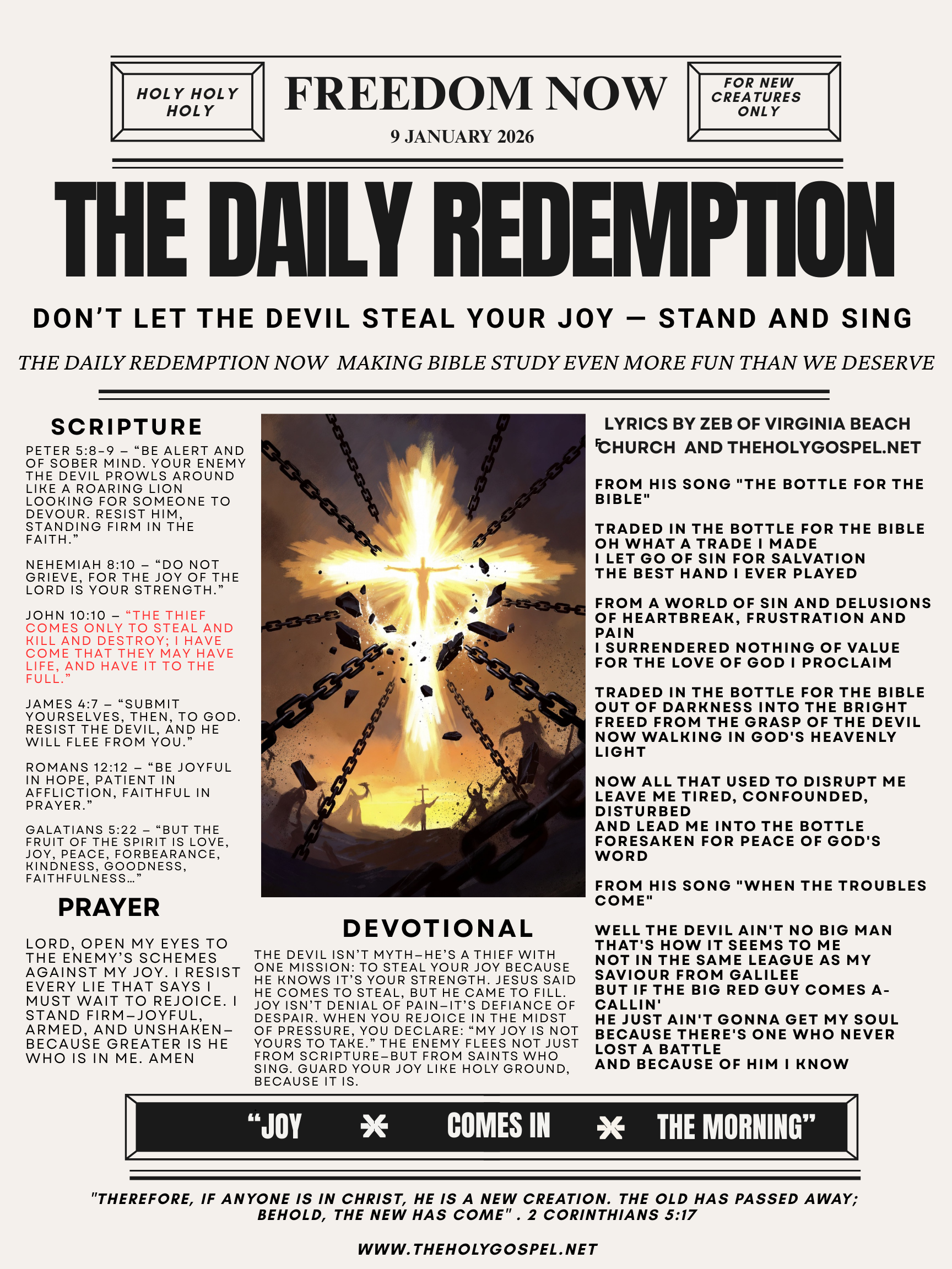 Holy Holy Holy and WELCOME to a new story of faith from your friends at the Daily Redemption Bible Bulletins at theholygospel.net—and here we go….