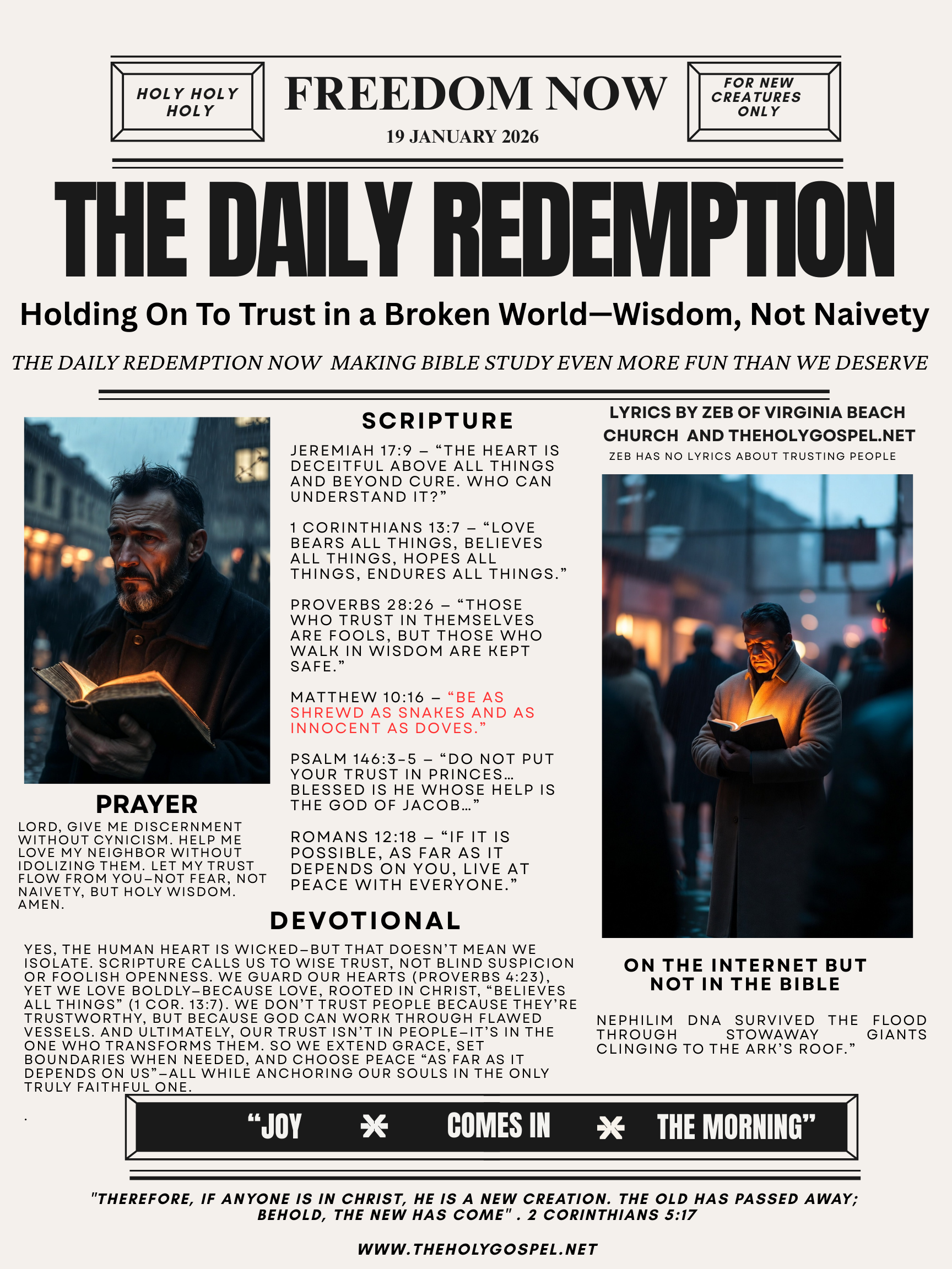 Holding On To Trust in a Broken World—Wisdom, Not Naivety – Daily Redemption Bible Bulletin – 19 Jan 26