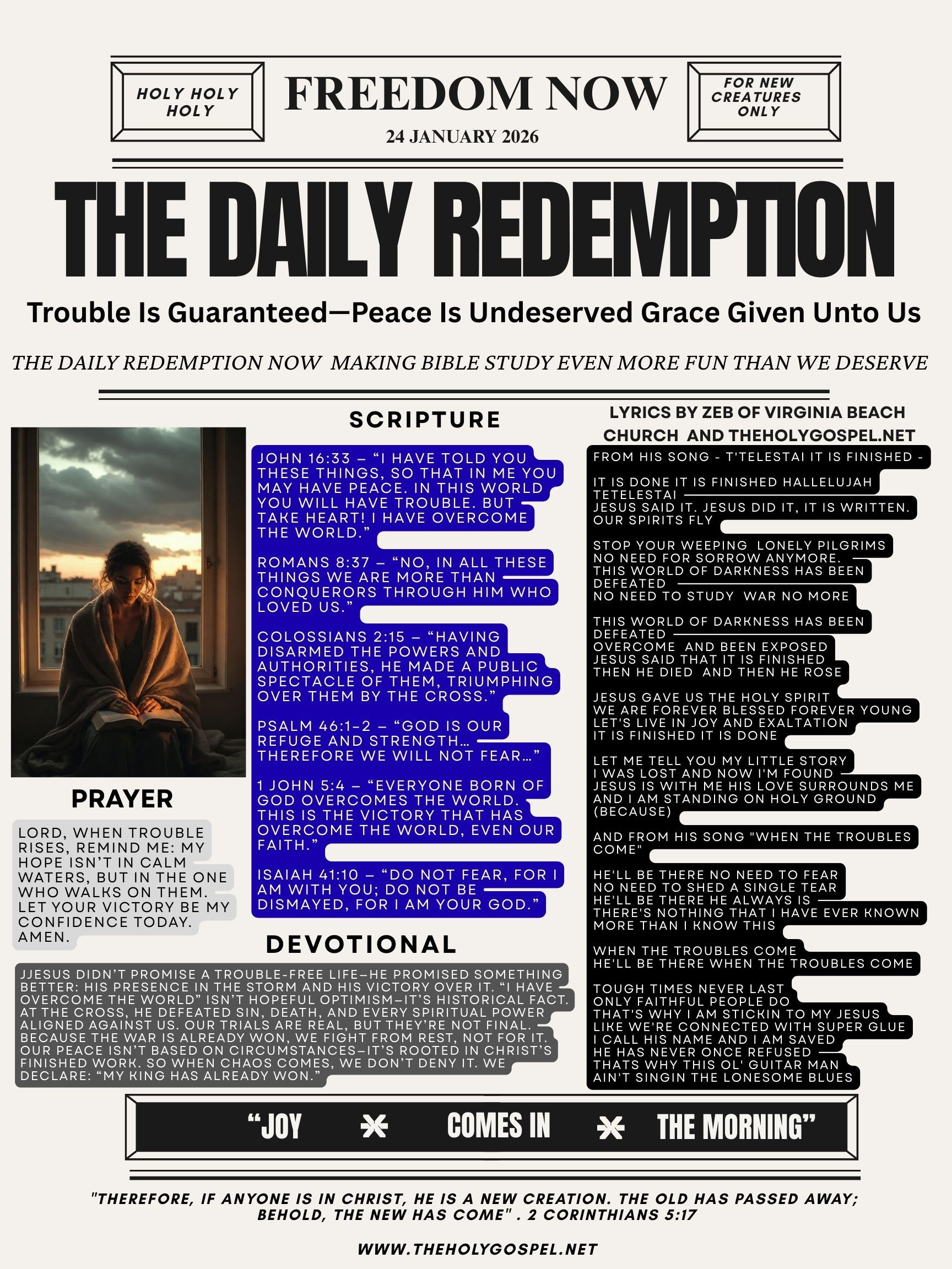 #DailyRedemption #OvercomeTheWorld #John1633 #PeaceInTrouble #MoreThanConquerors #BibleTruth #TakeHeart