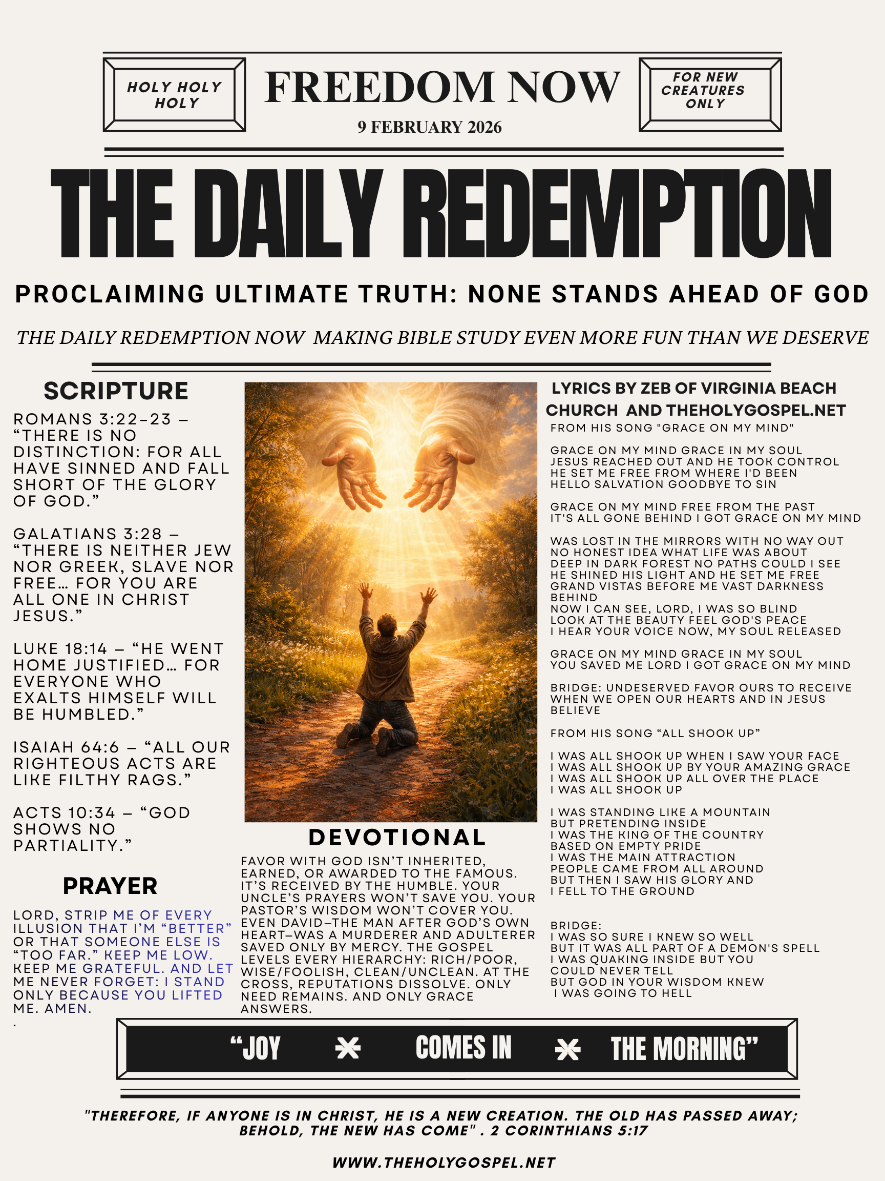 Lord, strip me of every illusion that I’m “better” or that someone else is “too far.” Keep me low. Keep me grateful. And let me never forget: I stand only because You lifted me. Amen.
