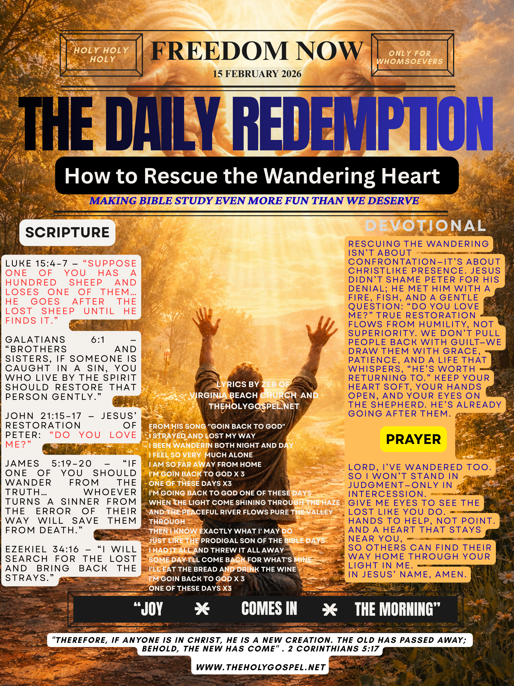 #DailyRedemption #RestoreTheWandering #BacksliderGrace #Luke15 #GentleRestoration #ShepherdHeart #BibleDevotional #ChristianGrace