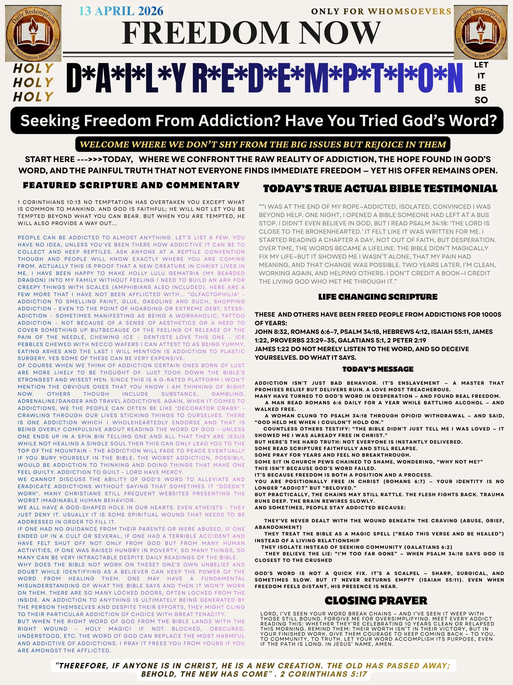 Welcome to today’s Daily Redemption — where we confront the raw reality of addiction, the hope found in God’s Word, and the painful truth that not everyone finds immediate freedom — yet His offer remains open.